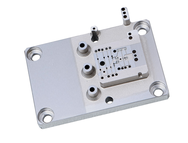 1.产品名称:滑动组顶块 2.材料:TEKAPEEK CMF 3.主要工艺:CNC 4.技术难点:小孔尺寸为φ0.31+0.02mm,相互孔位为±0.0075mm | 2.材料:SUS420 3.主要工艺:慢丝、火花 4.技术难点:慢丝火花加工处利边,深度及尺寸公差均为+0.01mm,相对位置±0.01mm | 1.产品名称:Holder转轴 2.材料:ZL101A,铝铸坯 3.主要工艺:铸造、数车、CNC 4.技术难点:铸坯材质均匀性,人工时效控制变形,两端精轴同轴度0.02mm |